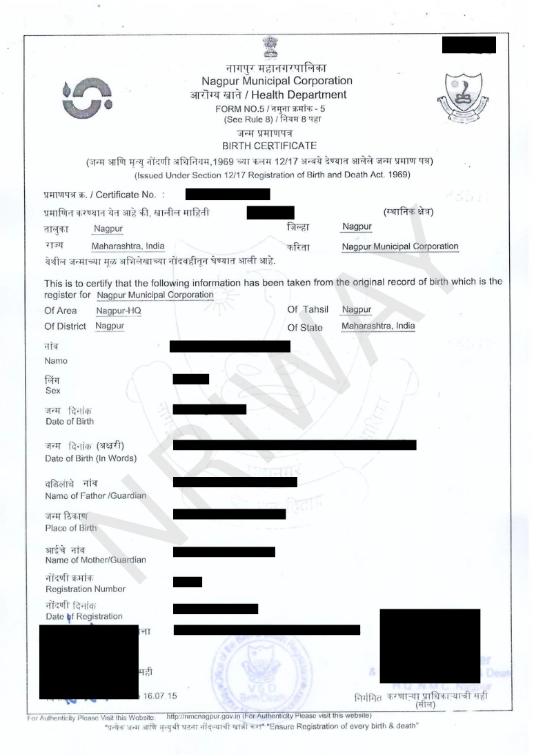 Birth Certificate From Nagpur