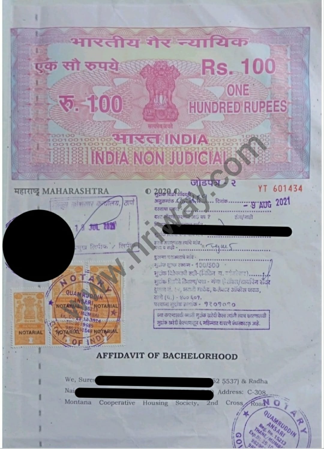A notary public is an officer who notarises the bachelorhood affidavit. He works at the ground level, attesting the document in the court.
