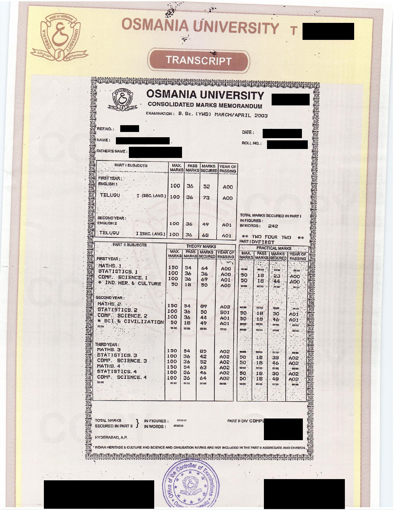Osmania University is one of the top-rated universities in Hyderabad. The marks transcripts from Osmania University include the marks of each subject for all the semesters. We at NRIWAY help you in getting your transcripts from Osmania University hassle-free.